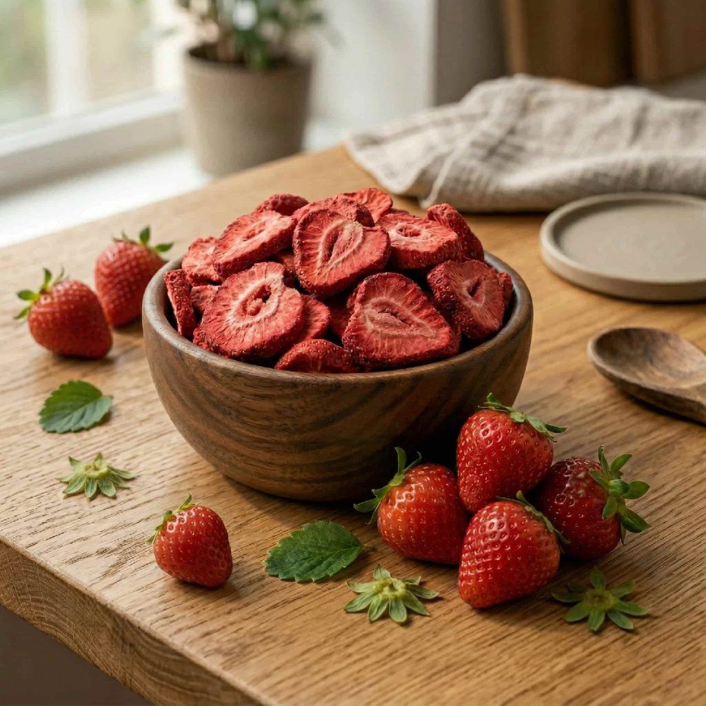 * Zaujímavosti: lyofilizované ovocie si získava obľubu aj u profesionálnych cukrárov – vďaka svojej farbe a intenzívnej chuti sa používa ako prírodná dekorácia aj ochucovadlo bez potreby umelých prísad.