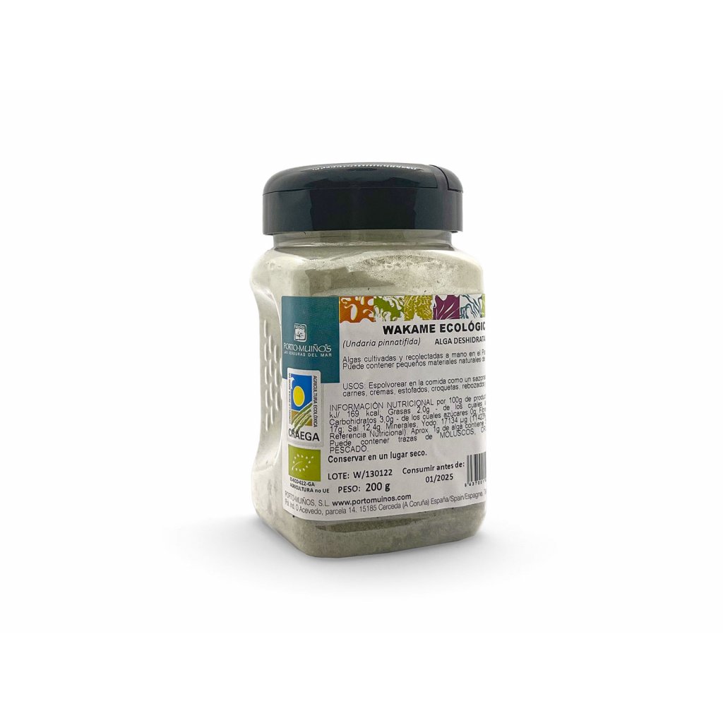 Složení: | 100% mořské řasy Wakame (Undaria pinnatifida) sušené z ekologického zemědělství. Bílá barva, která se na řasách může objevit, po |