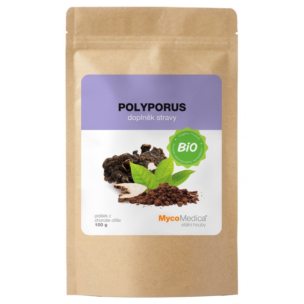 - Polyporus vo forme prášku (powder/biomasa), sa vyrába tak, že sa usušená plodnica huby rozomelie na veľmi jemný prášok špeciálnou metódou shellbroken, pri ktorej dôjde k narušeniu chitínového obalu bunky a uvoľneniu bioaktívnych látok. Oproti extraktu má táto forma jemnejšie pôsobenie.