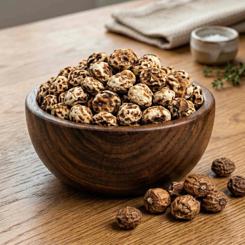 * Zaujímavosti: tigrie orechy boli jednou z prvých plodín pestovaných ľuďmi – archeologické nálezy ukazujú, že ich konzumovali už starovekí Egypťania pred viac ako 4 000 rokmi. Dokonca sa našli aj v hrobkách faraónov ako cenná potravina na „posmrtnú cestu“.